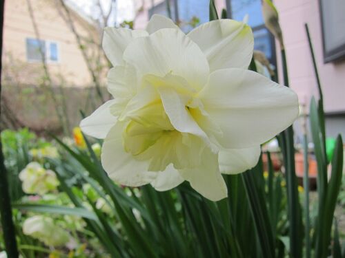白の八重スイセンも咲き始めました。 スイセンは、購入した時の記録があるものもあるのだけど… 咲いてるいるのがどれなの判断がつかないので困ってしまう… タケノコ(ホスタ)たち例年より動きが早いです。 タケノコの形状から展開中のものも。01.’リーガル …