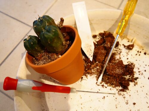 ここのところ固められたシリーズを連れ帰ってなかったので ほんとにしばらくぶりです。。。 固められた土からのサボテンの救出~ 水に漬けて土をやわらかくする方法もあるようですが 依然と変わらず、正攻法?で行かせてもらいます。 まったくね、気がつくと…